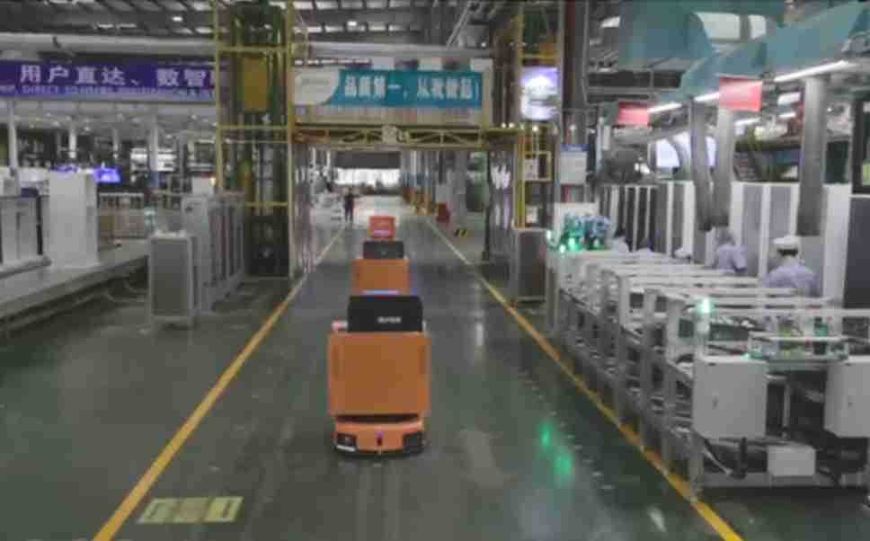 为车载冰箱物流配送打造的智能解决方案,,,,包含产中物流通过潜伏举升AMR搬运至线边,,产后成品物流智能仓储,,,,流程包含产中物流智能齐套入库,,线边安灯叫料AMR智能配送至线边,,,成品入库、、、、出库,,,,通过无人堆高车机器人,,,智能仓储管理替代人工作业管理,,,实现更高存储、、、、更高效率、、、更具柔性化的解决方案。。。。